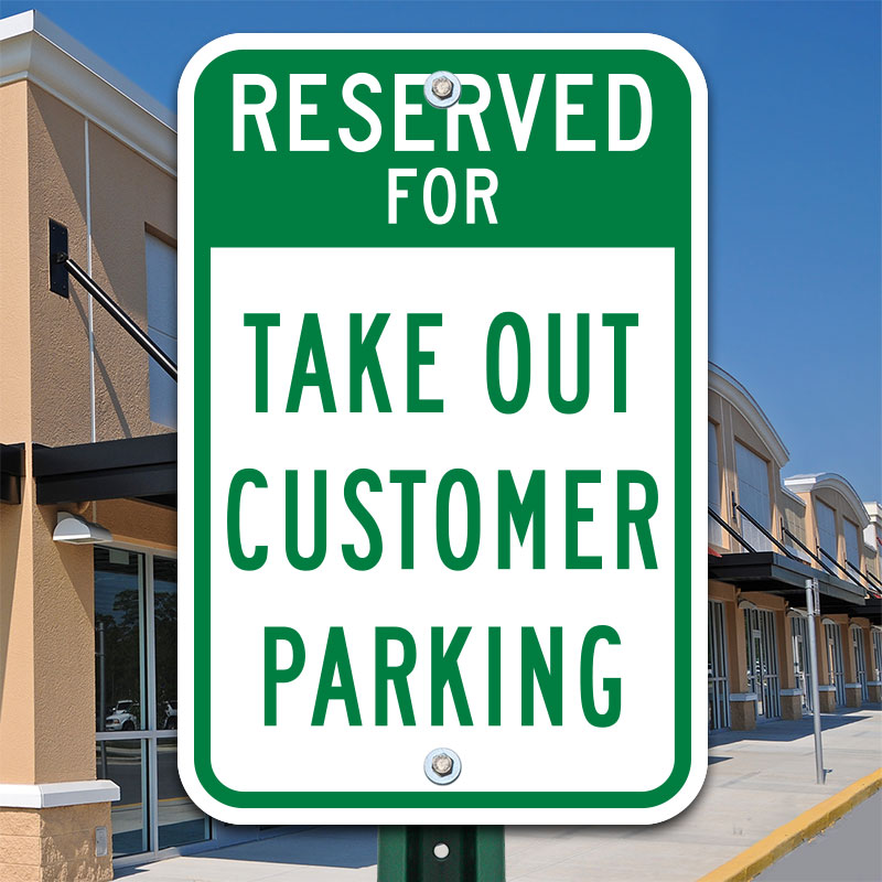 Reserved Take Out Customer Parking Sign is the perfect option to designate a special parking space for your customers on the go. Whether your sign needs are temporary or permanent, we offer multiple options in terms of size, material and hole configuration. Post your Reserved Take Out Customer Parking Sign to address your parking policy and traffic concerns.