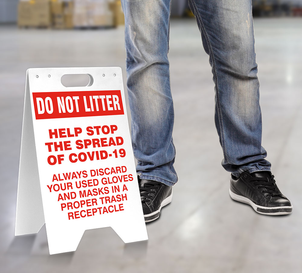 Do Not Litter Help Stop The Spread Floor Stand is a great reminder that everyone needs to comply with new requirements by maintaining a 6 foot distance to protect themselves and others from the spread of illness. These stands are in stock at our facility in Garfield, New Jersey. Most orders ship either the same or next business day.