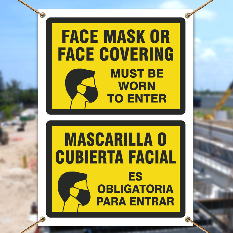 Use this Bilingual Face Mask Covering Banner to inform employee of new regulations and a plan of action they should take in response of the COVID-19 outbreak. Construction employers should develop a comprehensive COVID-19 exposure control plan, which includes control measures, symptom checking, social distancing, hygiene and decontamination procedures, and training. By posting Bilingual Face Mask Covering Banner all employees will understand the plan of action and avoid the risk of spreading the infection.