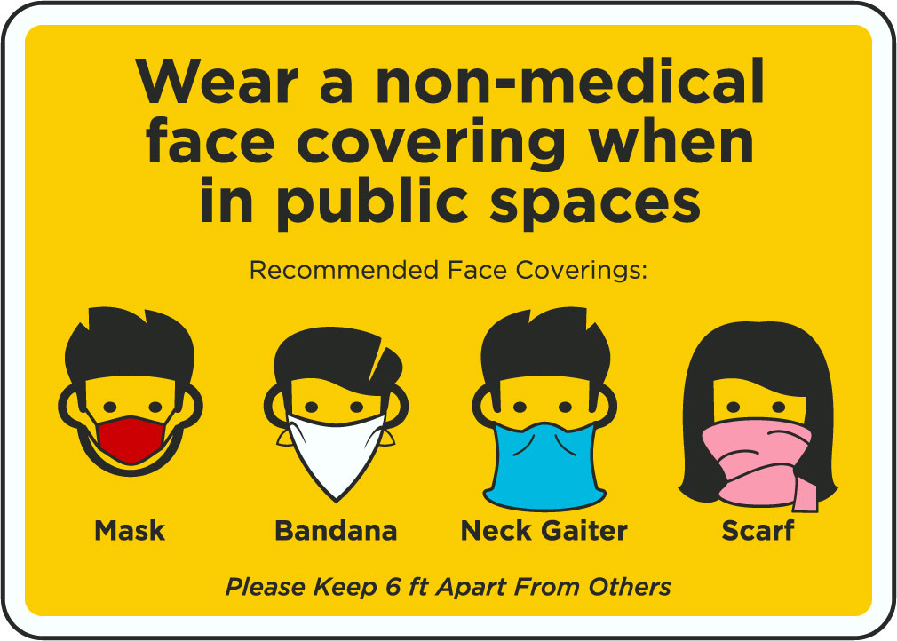 CDC recommends wearing face masks or face covering in public settings to prevent the spreading of infectious diseases. Post Non-Medical Face Coverings Sign to remind employees, visitors or customers to safely wear a face mask or face covering before entering your facility or in public spaces.