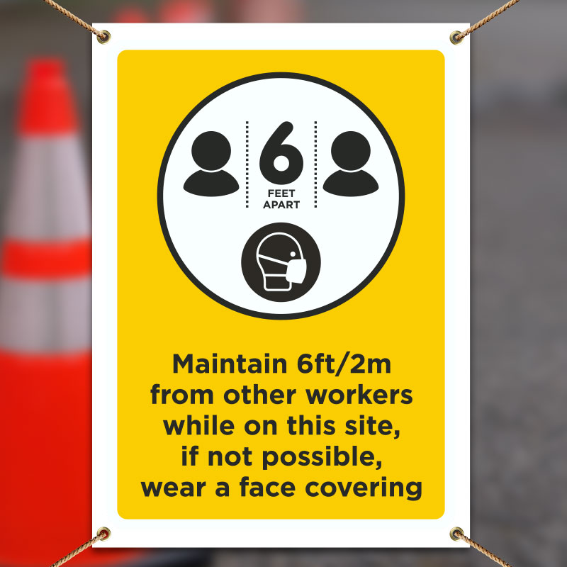 A Workers Maintain 6ft Banner is a great reminder that everyone needs to comply with new requirements by maintaining a 6 foot distance to protect themselves and others from the spread of illness.