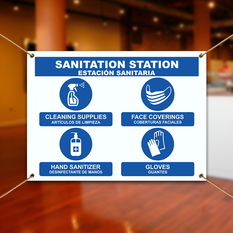 Use this Bilingual Sanitation Station Banner to inform customers of new regulations and a plan of action they should take in response of the COVID-19 outbreak. Business Owners should develop a comprehensive COVID-19 exposure control plan, which includes control measures, symptom checking, social distancing, hygiene and decontamination procedures, and training.