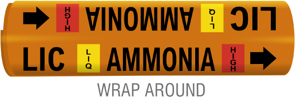 Ammonia markers have been developed to help contractors comply with ANSI / ASME A13.1-2015 standards for piping identification and IIAR's Recommended Guidelines, Bulletin #114 Identification of Ammonia Refrigeration Piping and System Components 2019 Revision.