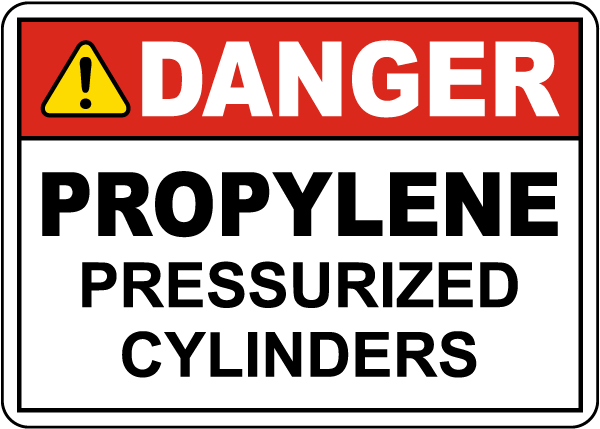 Use Danger Propylene Pressurized Cylinders Sign to identify, raise awareness and promote safety practices where propylene is used, handled, or stored. As an highly flammable chemical, it is important to take extra precautions when handling and storing propylene.