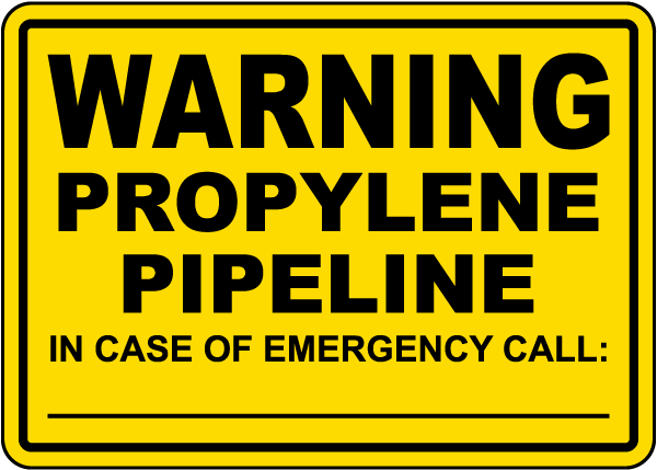 Use Warning Propylene Pipeline Sign to identify, raise awareness and promote safety practices where propylene is used, handled, or stored. As an highly flammable chemical, it is important to take extra precautions when handling and storing propylene.