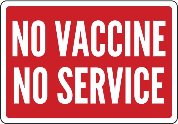 Post a No Vaccine No Service Sign to let everyone know proof of vaccination is required for entry. Clearly communicate your policies and requirements to employees, visitors and customers.