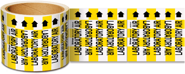 This Laboratory Air Medical Gas Marker on a Roll on a Roll uses informational messages for safety identification and compliance. A Laboratory Air Medical Gas Marker on a Roll on a Roll is a useful tool to help protect the health and safety of personnel, but is not a substitute for required protective measures for eliminating or reducing hazards.
