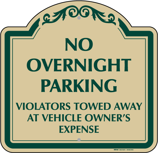 Looking for an Elegant Parking or Traffic Sign? This No Overnight Parking Sign will enforce your property policies while keeping an upscale look. Ideal for neighborhoods, private communities, parks, hotels and more.
