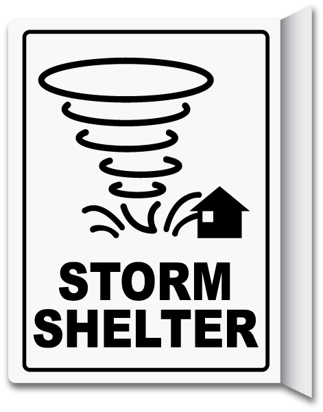 A Storm Shelter 2-Way Sign has safety messages for emergency response protocol and compliance. A Storm Shelter 2-Way Sign is a helpful resource to help protect the health and safety of personnel, and is not a substitute for required protective measures for reducing or eliminating hazards.