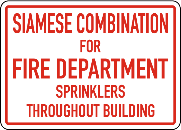 This Siamese Combination For Fire Dept Sign has fire department connection messages for emergency response protocol and compliance. The Siamese Combination For Fire Dept Sign is a helpful resource to aid in the protection of the health and safety of staff, and is not an alternative for required protective measures for eliminating or reducing hazards.