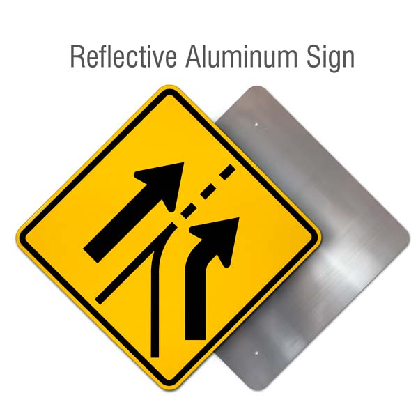 Right Entering Roadway Added Lane Signs are MUTCD Compliant (MUTCD W4-6R) and identify that you will be entering a roadway on a curve in a new lane. Right Entering Roadway Added Lane Signs are useful devices to help display official regulations and provide mandatory information to drivers on both private and public roadways.