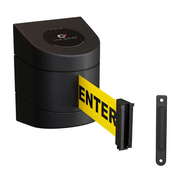 Our wall mount retractable belt barriers are designed with a slow retracting belt system for smooth belt retraction and no snapback.