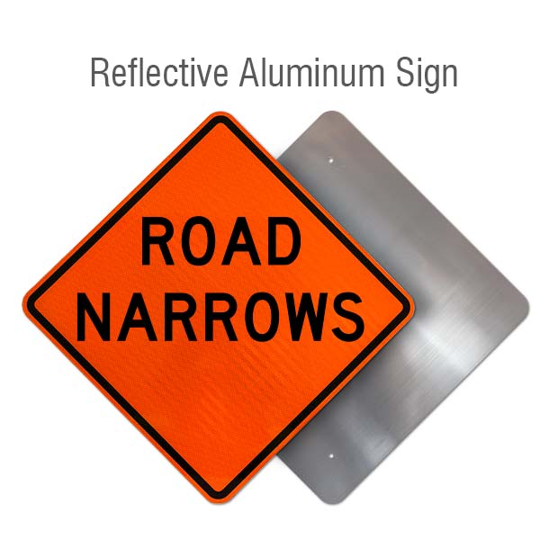 Road Narrows Signs are MUTCD Compliant (MUTCD W5-1) and help inform that the upcoming road is going to narrow. Road Narrows Signs are useful devices to help display official regulations and provide mandatory information to drivers and pedestrians on both private and public roadways.