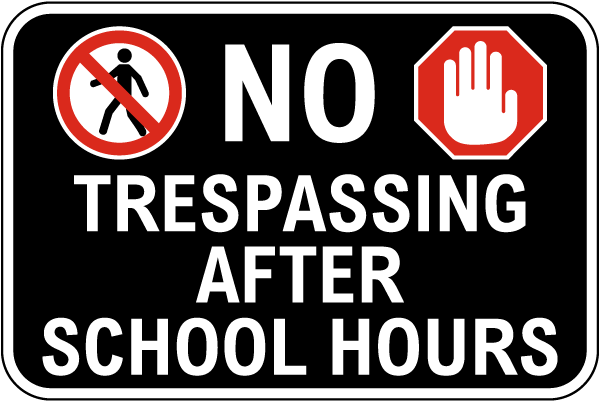Help inform others that trespassing onto school property after hours is forbidden with this No Trespassing After School Hours Sign. This sign is available in 3 different sizes and can be manufactured in a number of materials, making it ideal for all settings and placement.