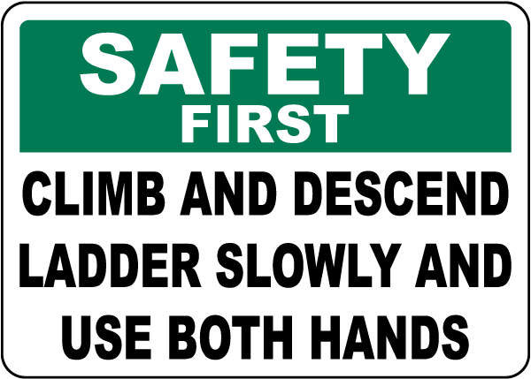 Our Safety First Climb and Descend Ladder Slowly Sign is a crucial safety tool for any work environment where ladders could be used. This sign is designed to serve as a visual reminder to be careful climbing ladders and to always use both hands to maintain safety and avoid potential injuries.