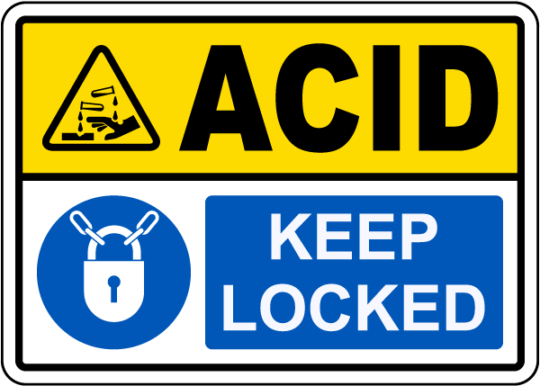 Our Acid Keep Locked Sign, featuring clear and eye-catching graphics, is a visual reminder to keep acid containers securely locked. With its bold text and accompanying symbol, this sign effectively communicates the need to prevent unauthorized access and potential hazards associated with acids. Display this sign prominently near acid storage areas to ensure compliance with safety protocols and prevent accidents.