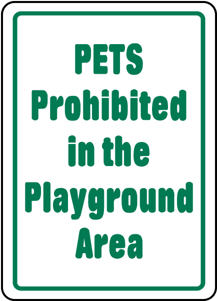 This Pets Prohibited In Playground Sign has effective messages to address property policy and safety concerns. A Pets Prohibited In Playground Sign is a helpful aid for the protection of the health and safety of personnel, and is not an alternative for required protective actions for eliminating or reducing hazards.