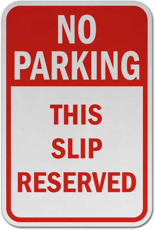 This No Parking This Slip Reserved Sign uses effective messages to address parking procedures and traffic concerns. A No Parking This Slip Reserved Sign is a useful device to help protect the health and safety of personnel, but is not an alternative for required protective measures for eliminating or abating hazards.
