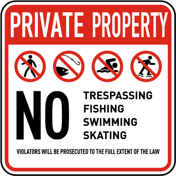 While it may be innocent, trespassing on private property to hunt, fish, swim, or skate is still considered intrusion. Notify people that they are about to enter a private premises by posting No Trespassing Signs on your property.