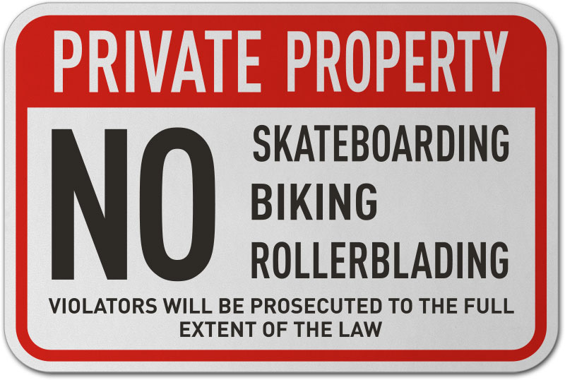This No Skateboarding Biking Sign has effective messages to address property policy and safety concerns. A No Skateboarding Biking Sign is a helpful aid for the protection of the health and safety of personnel, and is not an alternative for required protective actions for eliminating or reducing hazards.