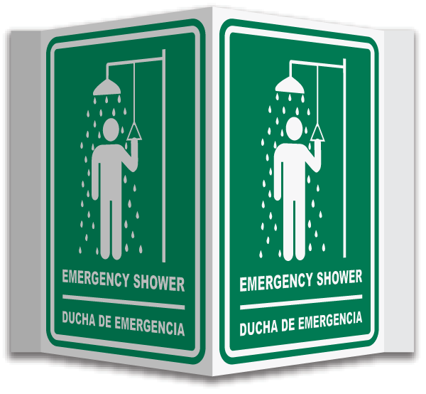 Our 3-Way Bilingual Emergency Shower Sign is an essential safety tool designed to ensure quick identification and location of emergency shower areas in any workplace or facility. With its clear and visible design, this sign provides messaging in both English and Spanish languages directing individuals to the designated area during emergency situations when ringing is required. By prominently displaying our 3-Way Bilingual Emergency Shower Sign, you prioritize the safety and well-being of employees and visitors from different language backgrounds, ensuring they can quickly locate and access the necessary decontamination facilities.