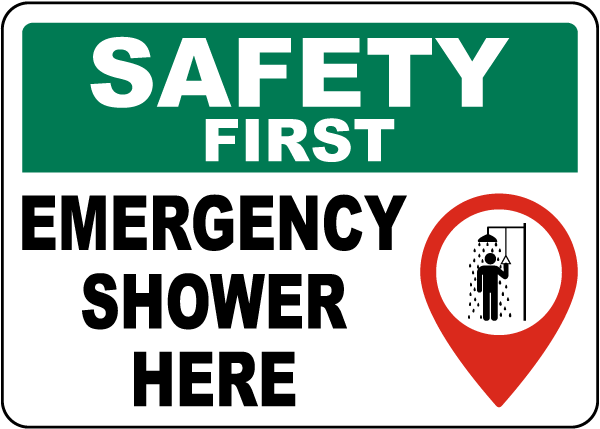 Experience safety at its finest with our Safety First Emergency Shower Here Sign, the ultimate solution for effectively guiding individuals to the emergency shower in times of crisis. Engineered with precision and a focus on clarity, this sign ensures quick recognition and prompt action when it matters most. By prominently displaying our Safety First Emergency Shower Here Sign, you send a powerful message about the importance of safety and preparedness in your workplace.
