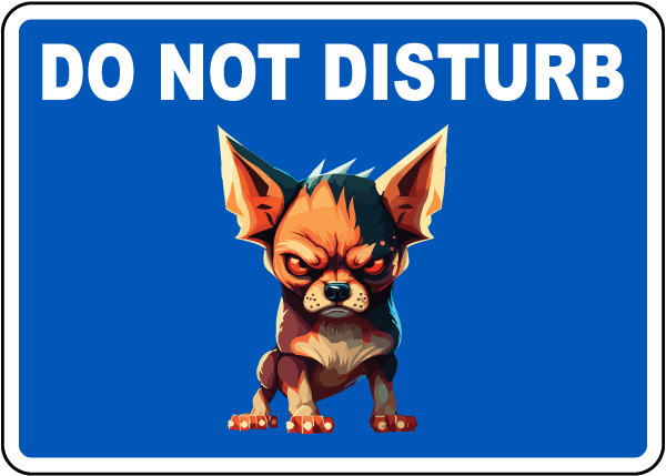 Our Do Not Disturb sign features a sleepy dog graphic, providing a lighthearted and effective way to convey the message of privacy and quiet. The charming design captures attention while reminding others to be considerate and avoid disturbing. Whether utilized in hotels, bedrooms, or any quiet space, this sign delivers a friendly request for peace and quiet.