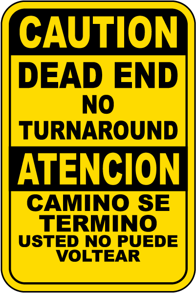 Foster clear communication with our Bilingual Caution Dead End No Turn Around Sign. This versatile sign delivers an important message in both English and Spanish languages, indicating that the road ahead is a dead end with no available turnaround. Perfect for diverse communities and areas with limited space for maneuvering. This sign prevents unnecessary confusion and promotes safe driving practices.