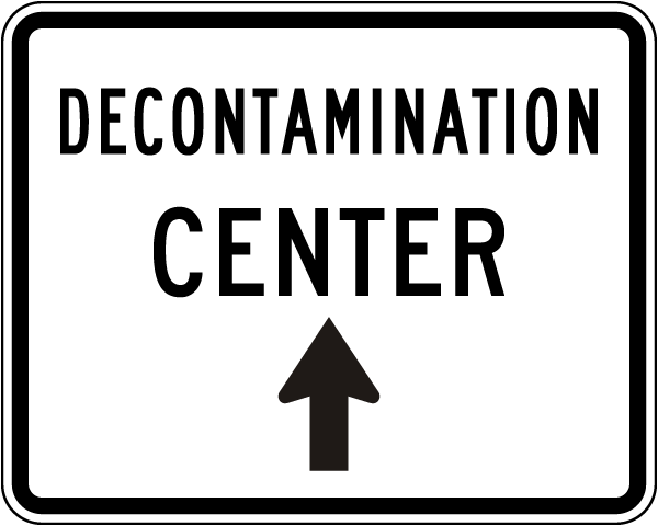 When vertical guidance is needed for decontamination, our Decontamination Center (Upward Arrow) Sign directs individuals upward to the designated decontamination center. This sign ensures that individuals can easily find the facility for essential decontamination processes, contributing to safety and effective response measures.