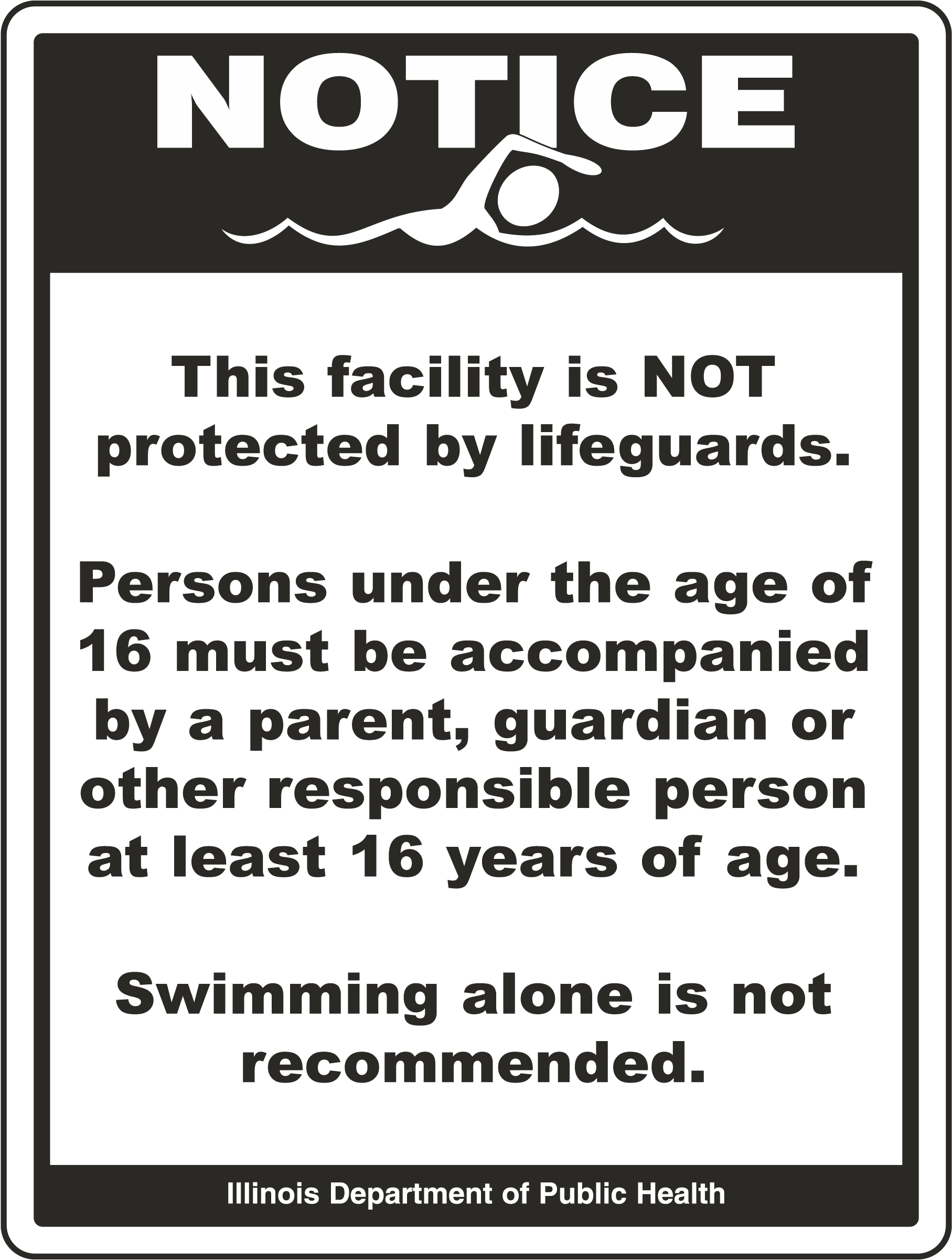 Our Illinois Facility Not Protected by Lifeguards Sign serves as a critical warning to inform patrons that the facility is not protected by lifeguards, encouraging responsible behavior and heightened safety awareness. Constructed from high-quality materials, this sign ensures durability and clear visibility in all weather conditions.