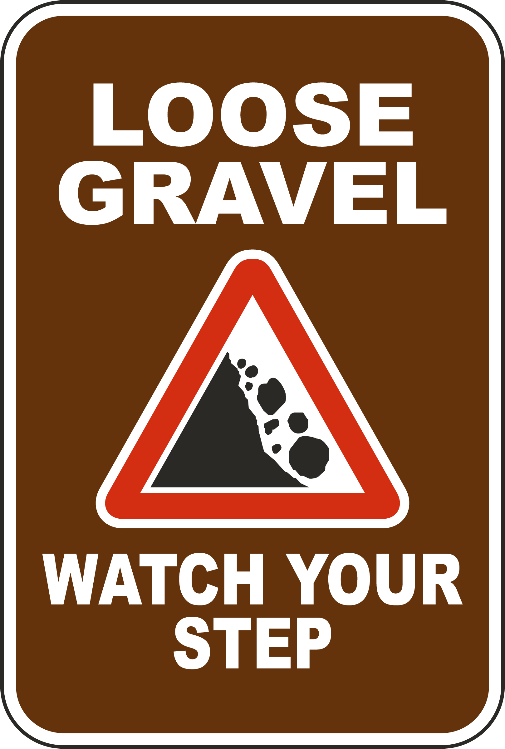 Our Loose Gravel Watch Your Step Sign provides a warning to pedestrians about loose gravel, prompting caution while walking. Made from durable materials, it ensures visibility and helps prevent slips and falls.