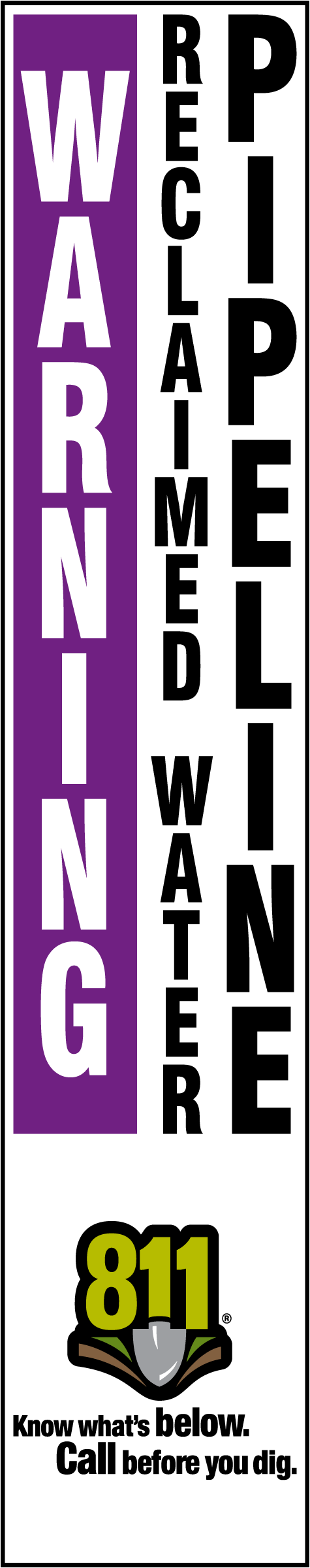 Warning Reclaimed Water Pipeline 811 Know What's Below. Call Before You Dig.
