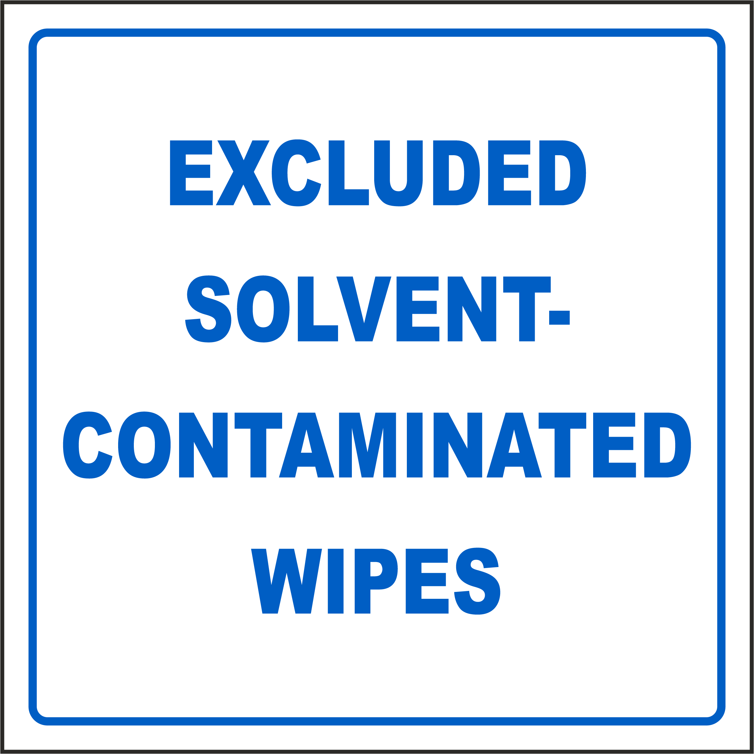 Our Excluded Solvent-Contaminated Wipes Label serves as a regulatory compliance identifier, indicating that the container holds solvent-contaminated wipes excluded from hazardous waste regulations. This label ensures proper handling and storage of these materials.