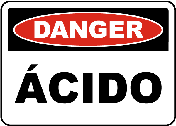 This Spanish Danger Acid Sign uses official OSHA headers for safety protocol and compliance. A Spanish Danger Acid Sign is a useful device to help protect the health and safety of personnel, but is not an alternative for required protective measures for eliminating or abating hazards.