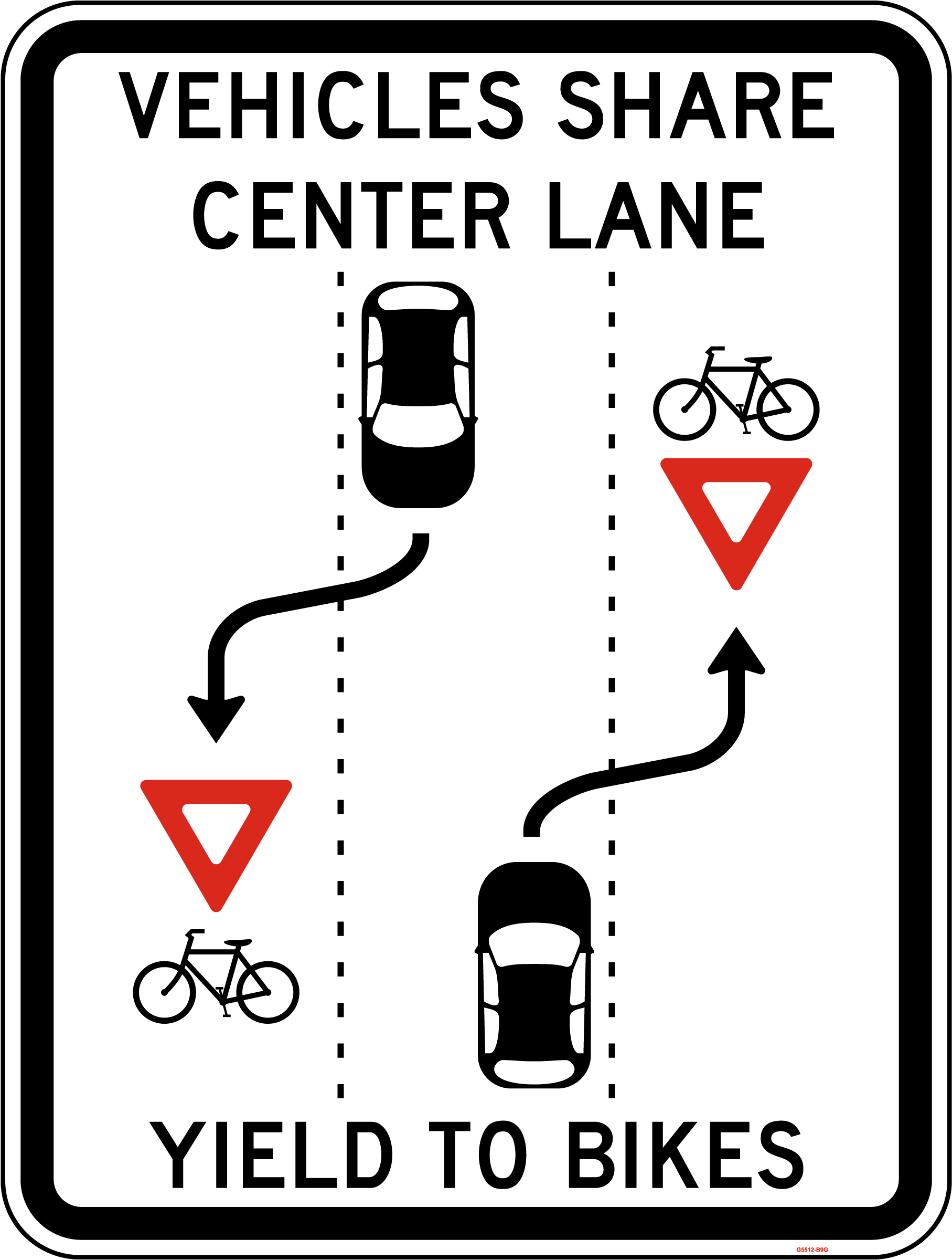 Our Vehicles Share Center Lane Yield To Bikes Sign serves as a reminder for vehicles to share the center lane and yield to bicycles. Made from high-quality materials, this sign is designed for long-term durability and visibility, ensuring safe coexistence between vehicles and cyclists.