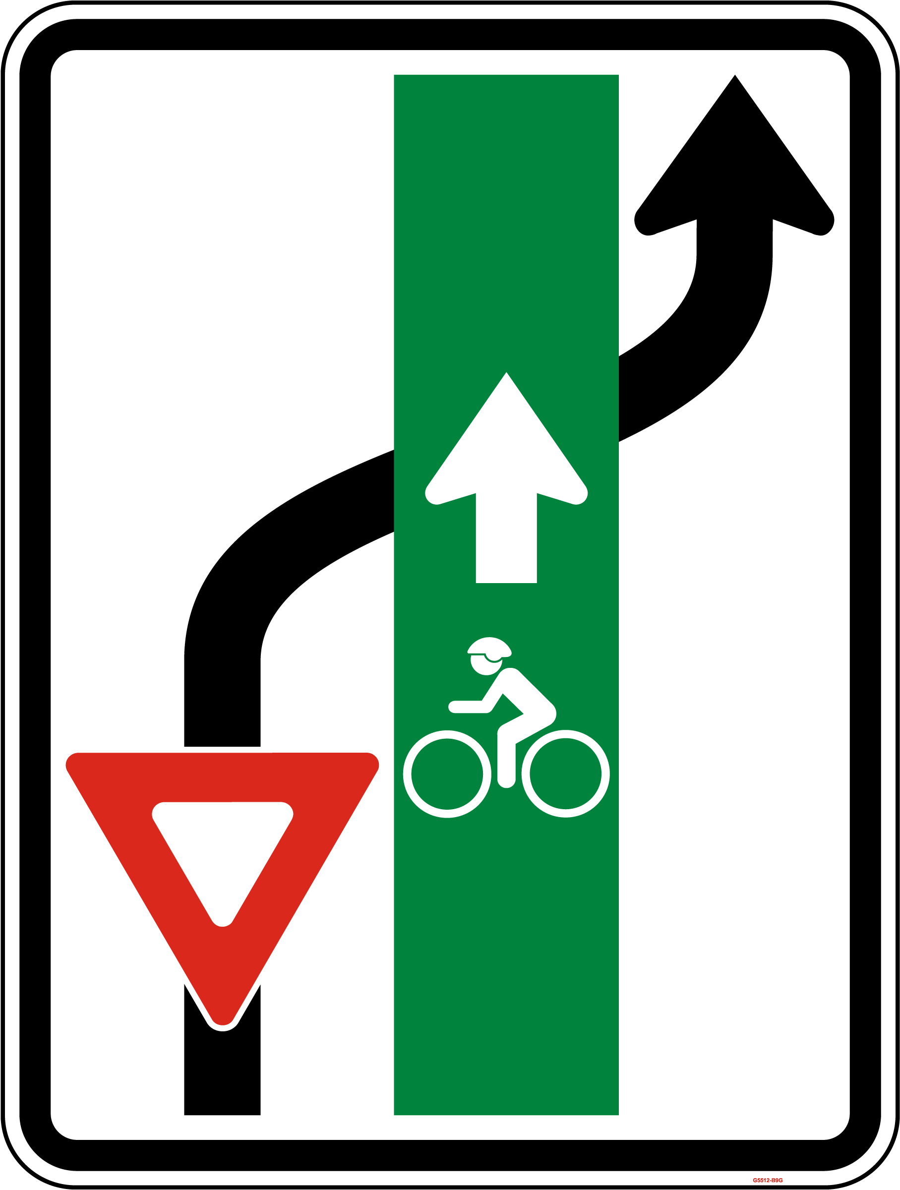 Our Yield To Bikes When Getting Into Right Turn Lane Sign serves as a caution for drivers to yield to bicyclists when merging into the right turn lane. Made from high-quality materials, this sign ensures enduring visibility and reliability, enhancing safety for both drivers and cyclists.