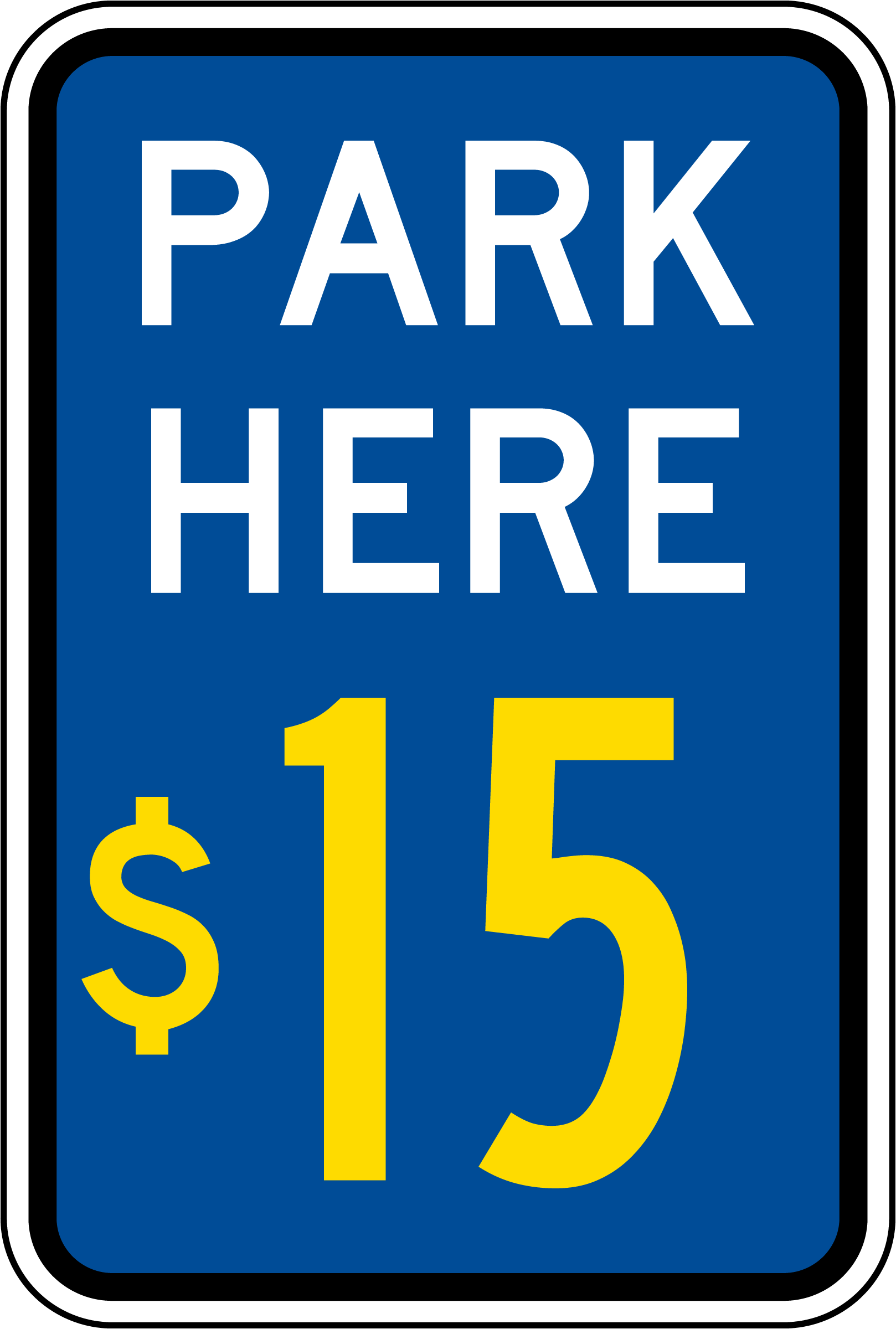 Our Park Here $15 Sign serves as a visible and straightforward pricing marker, communicating the parking fee to drivers and helping avoid any confusion or disputes. This sign is perfect for lots, garages, or event parking areas where clear information is key. Made from durable, high-quality materials, this sign is built to last in any setting.