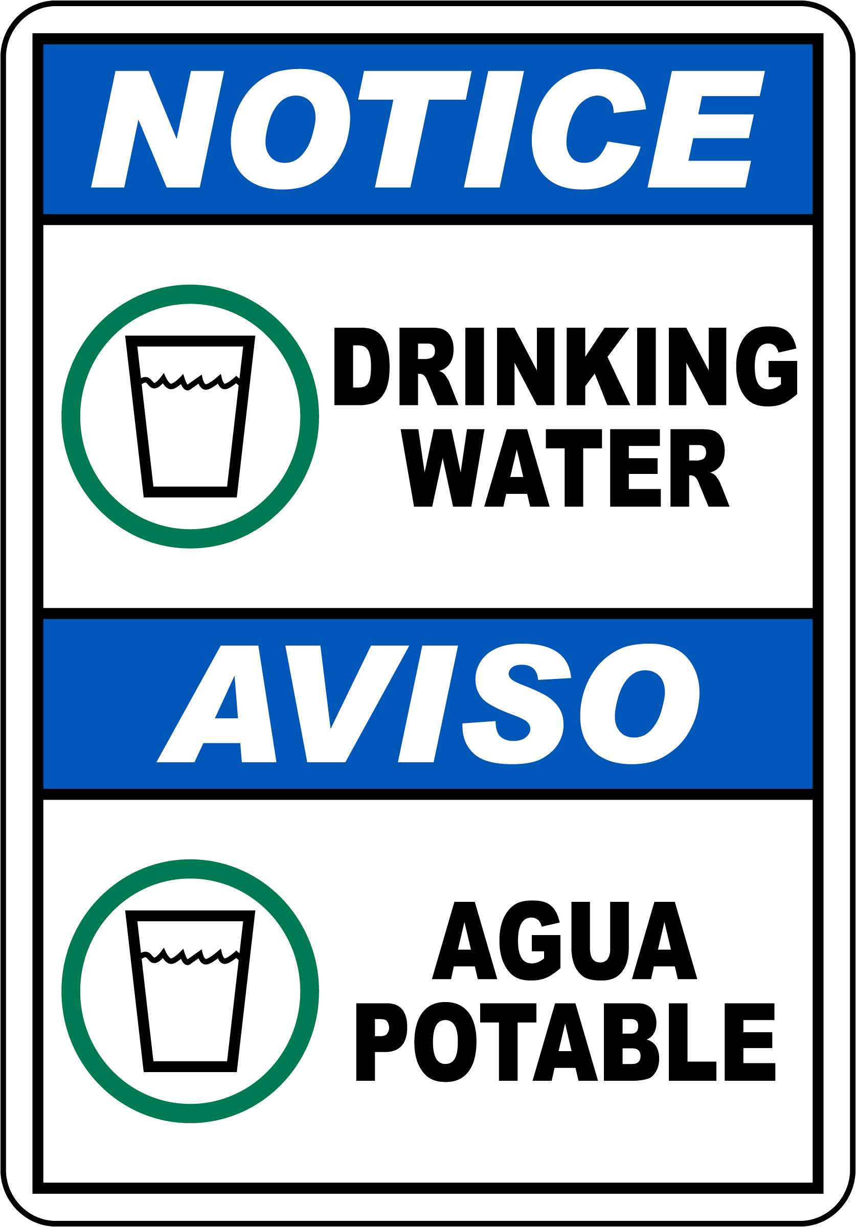 Our Bilingual Notice Drinking Water Sign is a clear and accessible indicator for both English and Spanish-speaking individuals, ensuring everyone knows that the water provided is safe for drinking. This highly durable sign is essential for facilities that prioritize inclusivity and safety.