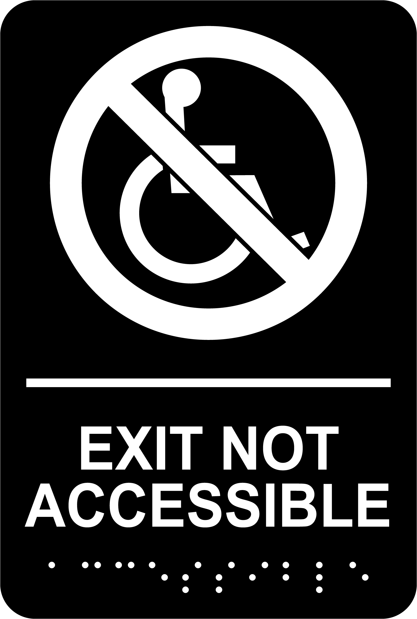 Our Exit Not Accessible Sign with Braille clearly marks exits that are not accessible. Crafted from sturdy materials for long-term use, this sign complies with ADA standards and ensures clear messaging for all individuals.