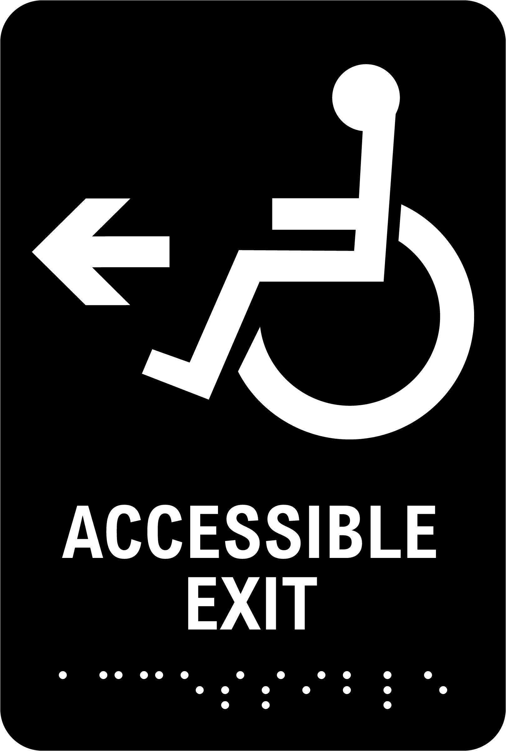 Our Accessible Exit To The Left Sign with Braille guides individuals toward the left exit. Crafted from sturdy materials for long-lasting use, this sign complies with ADA standards, offering clear and accessible exit instructions.