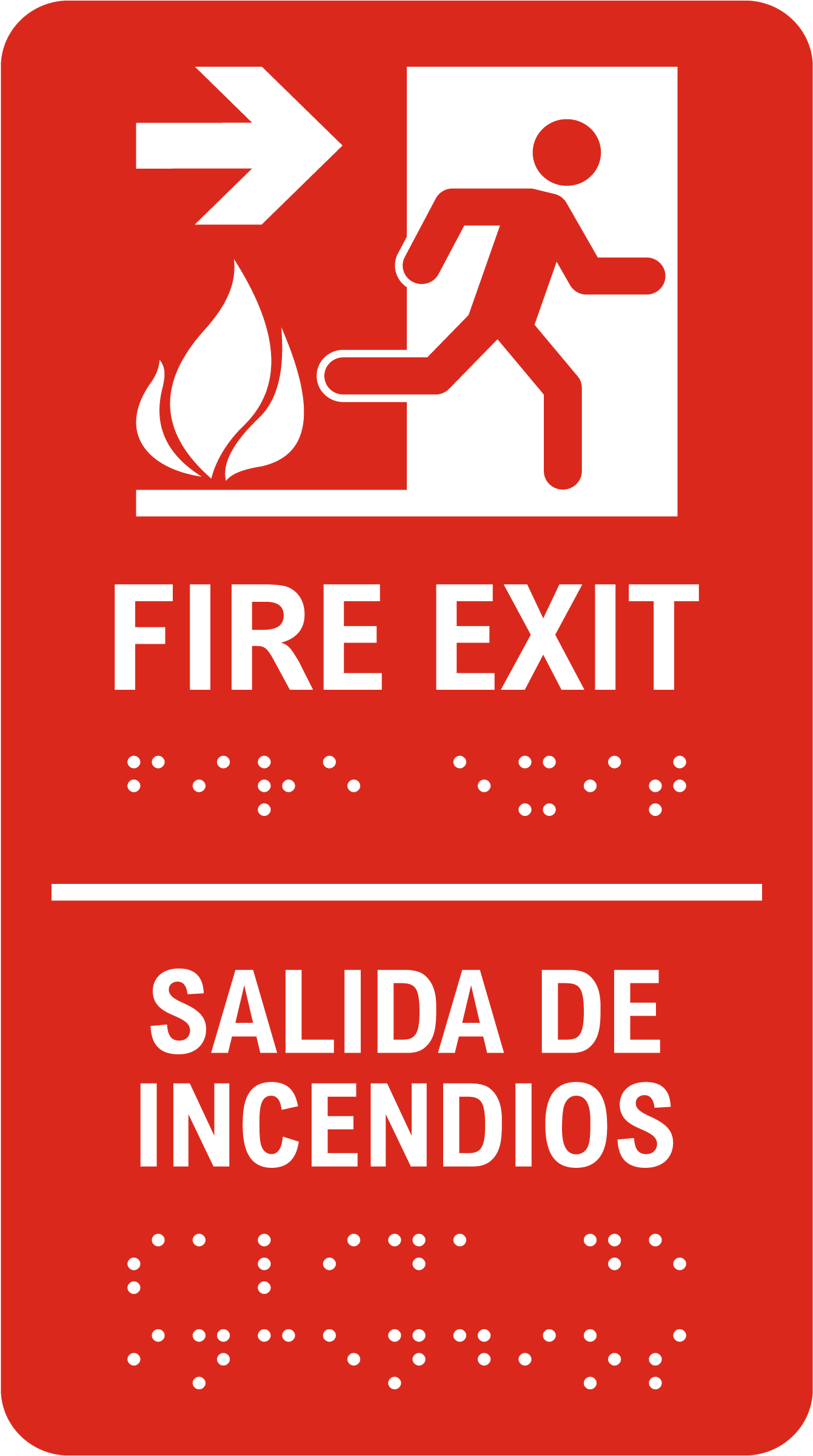 Our Bilingual Fire Exit To The Right Sign ensures everyone can easily locate the nearest fire exit. Crafted with premium materials, this durable sign features braille and meets ADA standards for accessibility in English and Spanish.