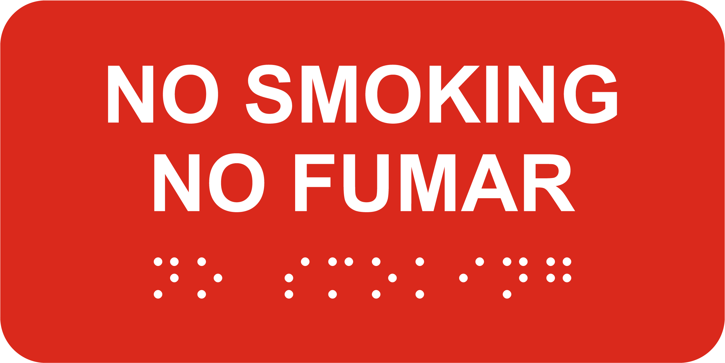 Our Bilingual Horizontal No-Smoking Sign with Braille promotes a smoke-free environment with clear messaging in English and Spanish. This durable sign is built to comply with ADA standards and includes braille for universal readability.