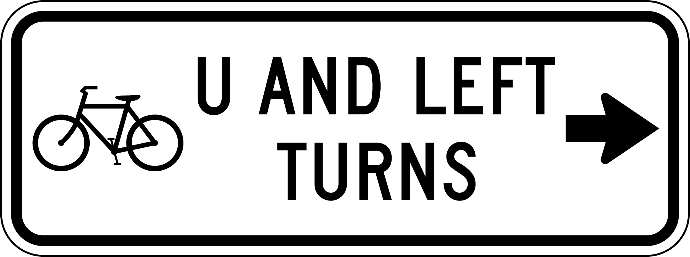 This Bicycle U And Left Turns Right Arrow Sign helps cyclists understand the proper turning movements at intersections, guiding them to execute safe U-turns and left turns. It is commonly installed at multi-lane crossings and areas where bike lanes intersect with traffic lanes.