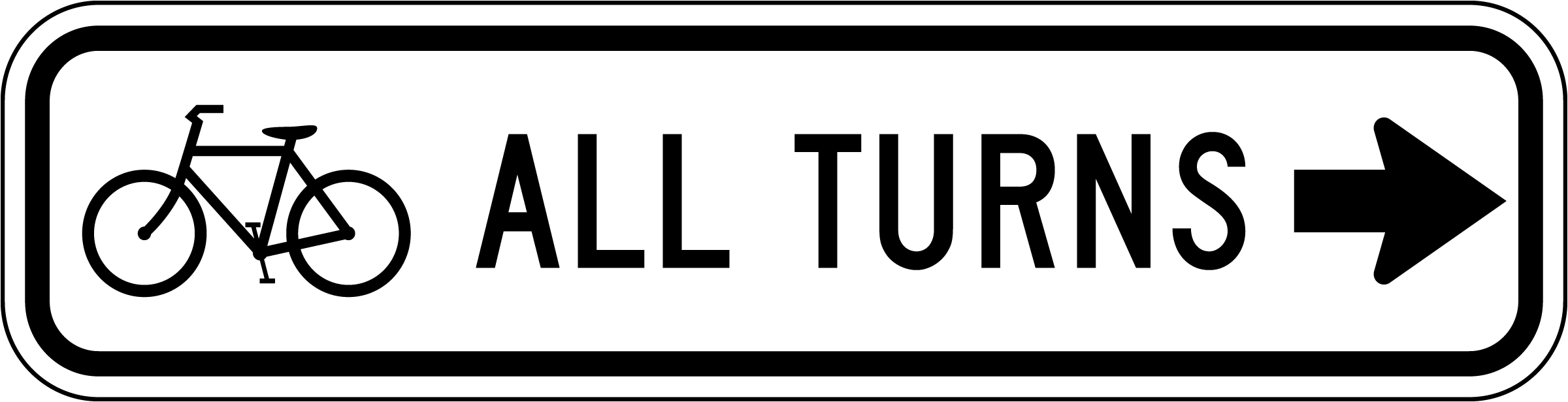 This Bicycle All Turns Right Arrow Sign helps cyclists navigate turns by indicating a designated turning path. It ensures safe and predictable movements for all road users. Typically placed at intersections and bike-friendly streets, this sign promotes safer cycling navigation.
