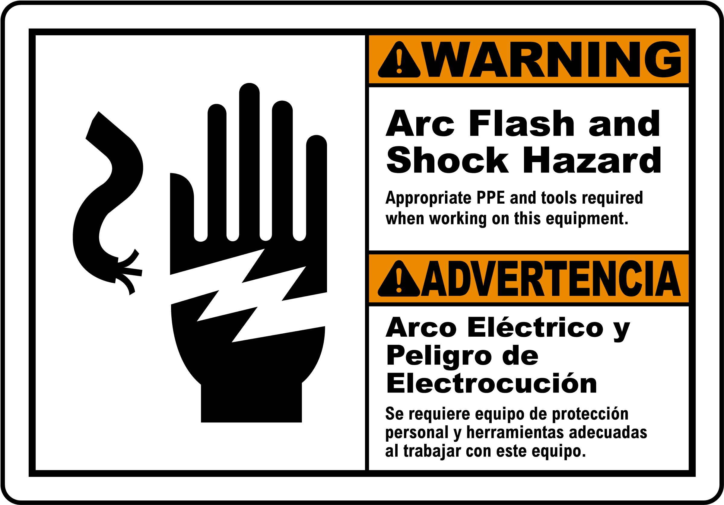 WARNING Arc Flash and Shock Hazard Appropriate PPE and tools required when working on this equipment. ADVERTENCIA Arco Electrico y Peligro de electrocucion. Se requiere equipo de proteccion personal y herramientas adecuadas al trabajar con este equipo.