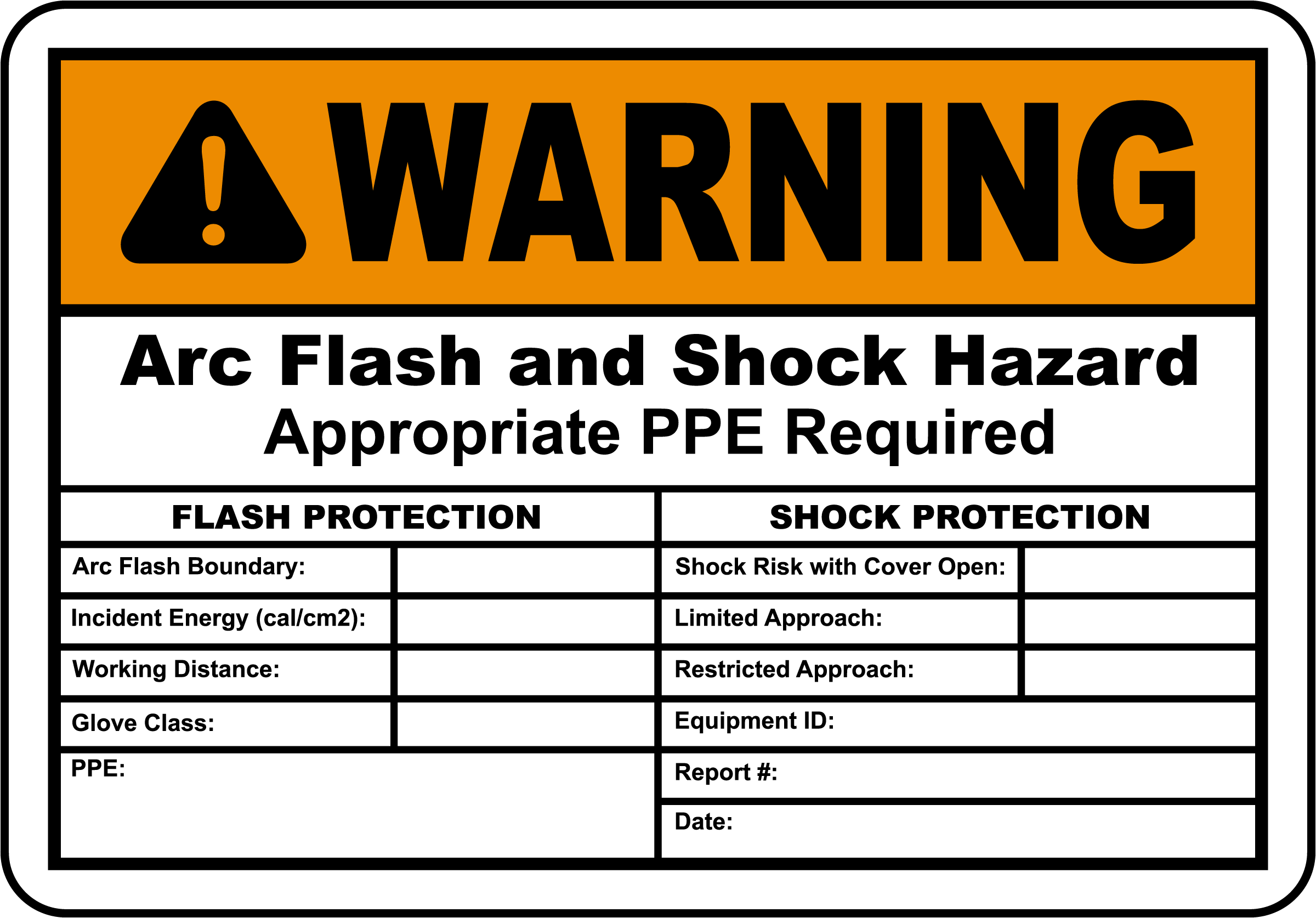 WARNING Arc Flash and Shock Hazard Appriopriate PPE Required FLASH PROTECTION Arc Flash Boundary: Incident Energy (cal/cm2): Working Distance: Glove Class: PPE: SHOCK PROTECTION Shock Risk with Cover Open: Limited Approach: Restricted Approach: Equipment ID: Report #: Date: