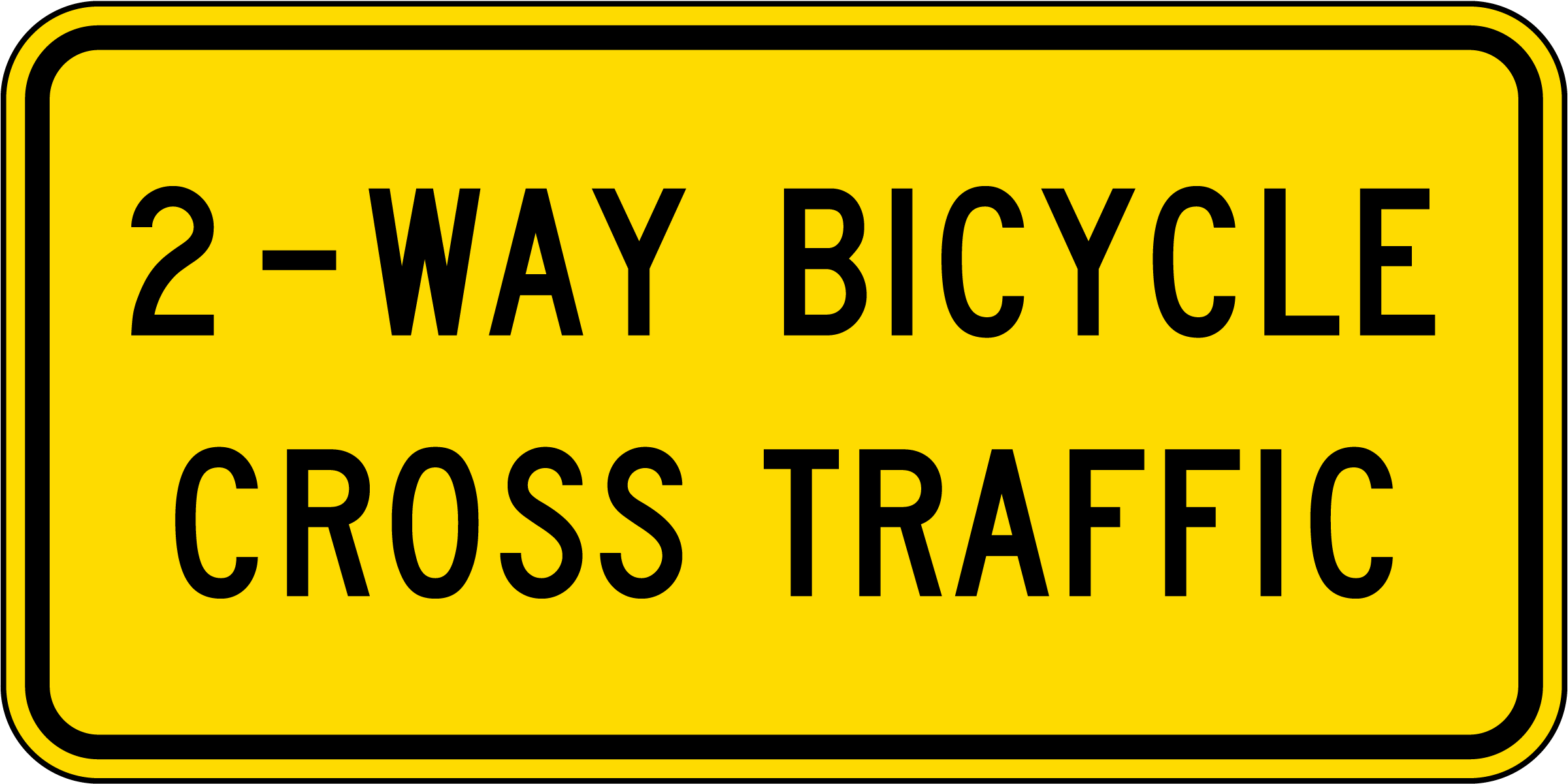 This 2-Way Bicycle Cross Traffic Sign alerts drivers to the presence of two-way bicycle traffic, improving safety for cyclists and motorists alike. Its clear symbols and bold lettering make it easy to understand at a glance. It is crucial for bike lanes, shared roadways, and urban intersections.