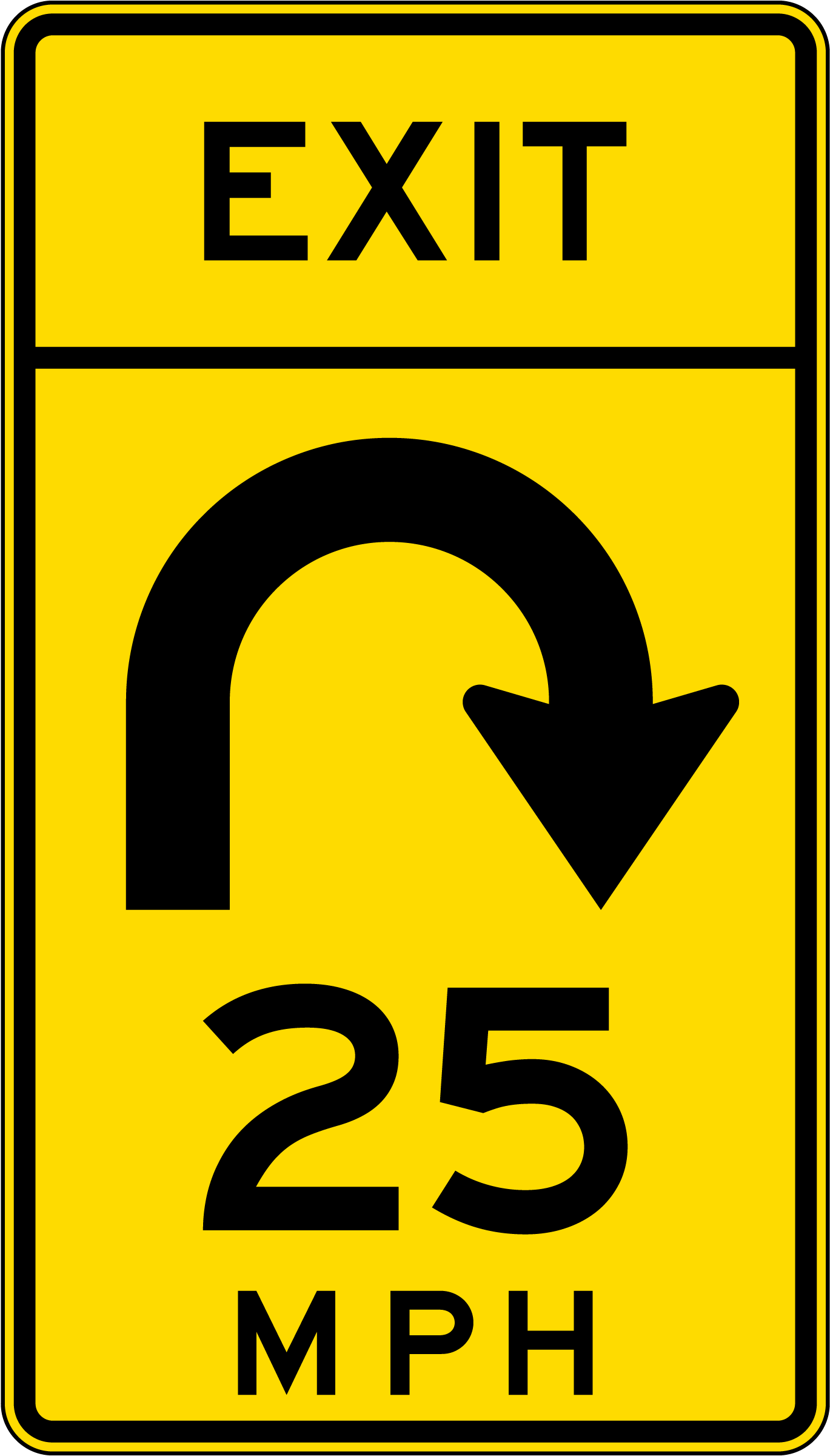 Advisory Exit Speed 25 Mph Right Loop Sign