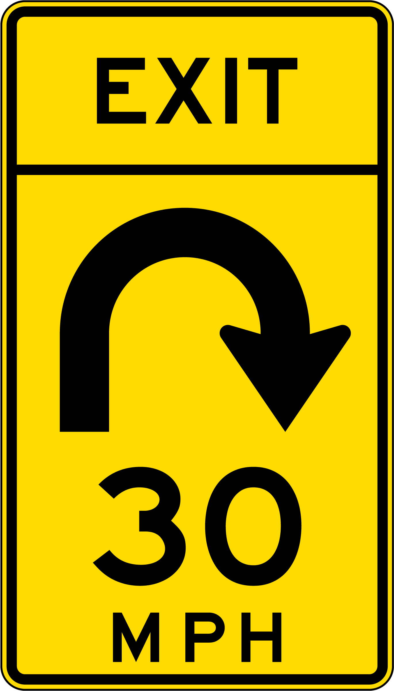 Advisory Exit Speed 30 Mph Right Loop Sign