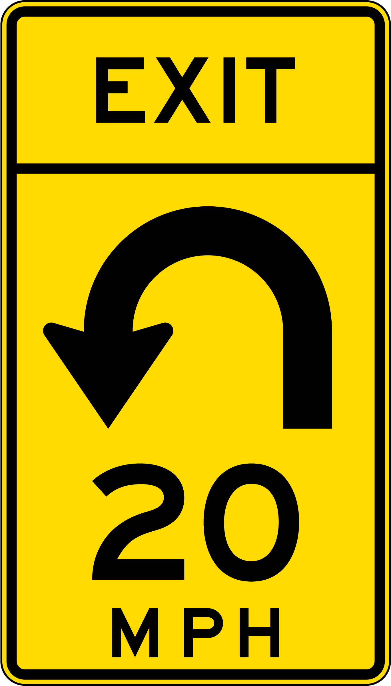 Advisory Exit Speed 20 Mph Left Loop Sign